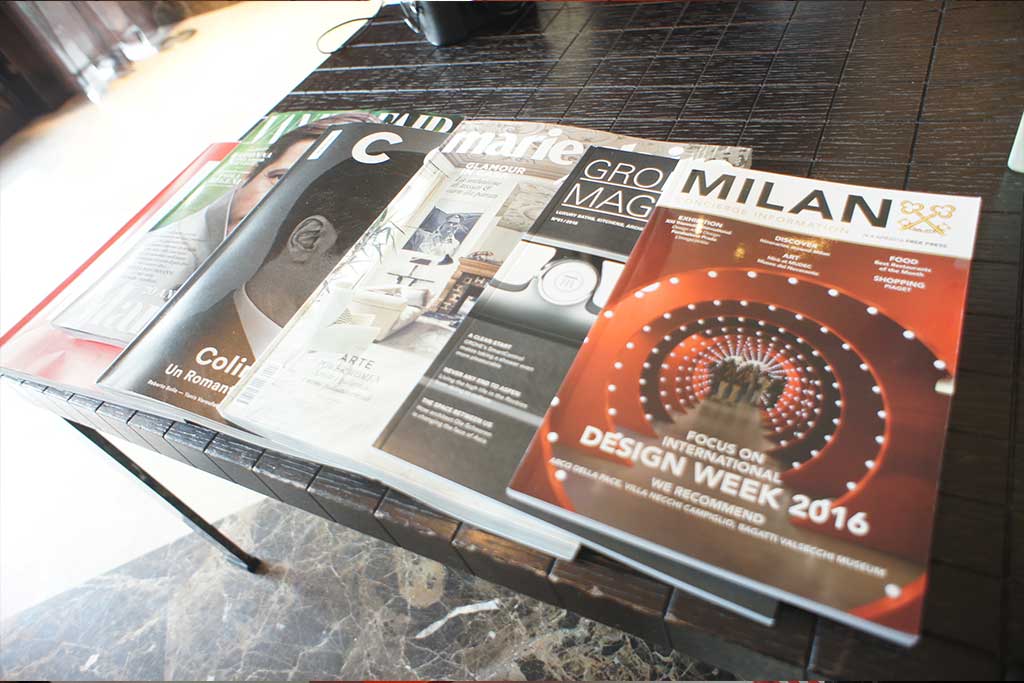 泊まったホテルのロビーに置かれた雑誌もデザインウィークやサローネ関連の家具情報でいっぱい。