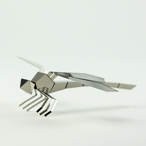 英国生まれの折り紙「ポリゴン」。ステンレス製の折り紙で、アート感あふれるトンボができあがります。